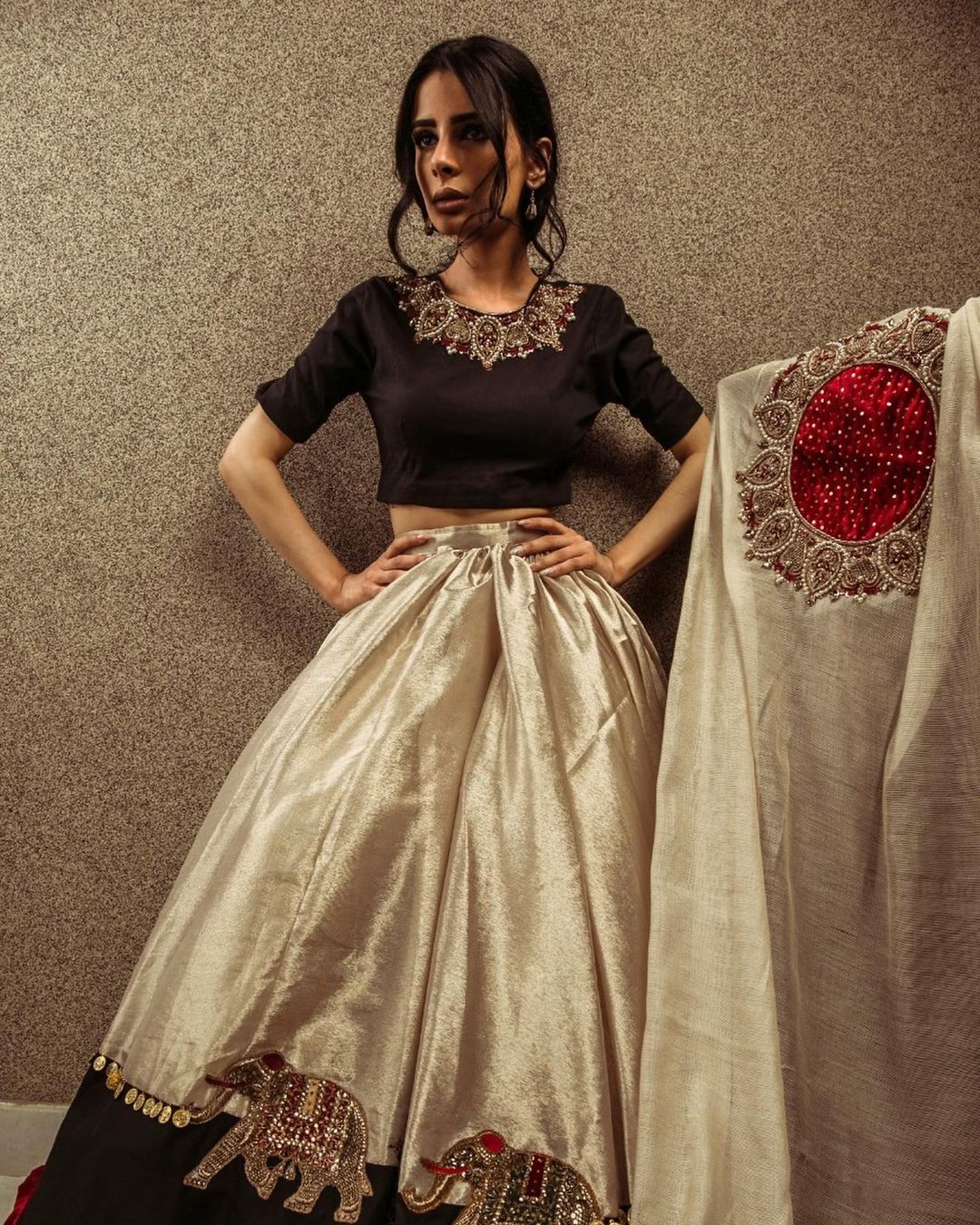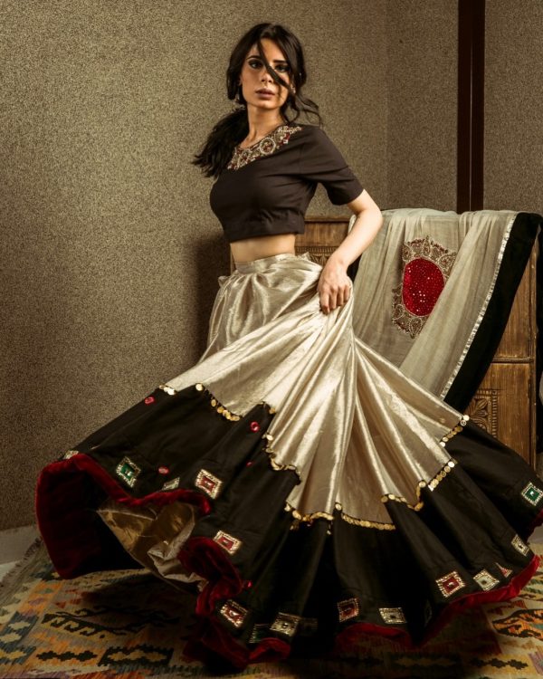 “Elevate your elegance with a stunning Messori Jamawar paired with black Irish Cotton and velvet sharara. The golden Messori and black velvet ensemble, adorned with intricate red and gold work, is the epitome of timeless sophistication.”