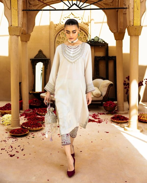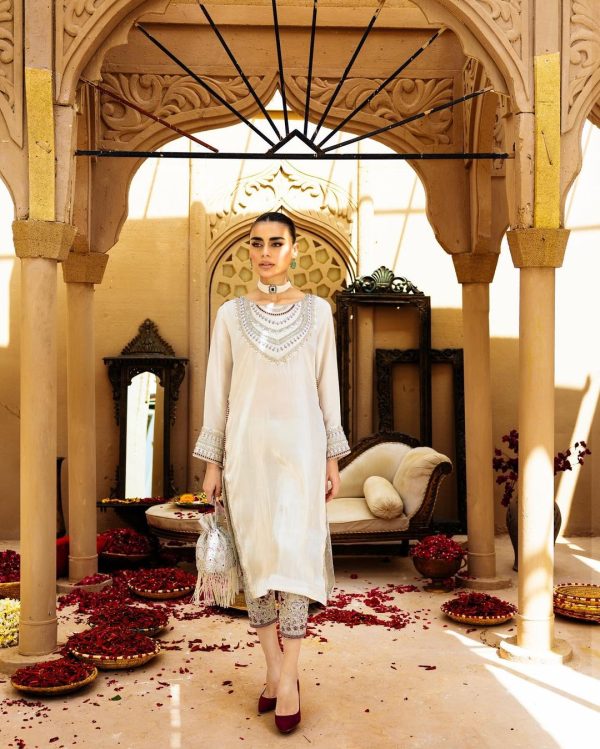 Step into sophistication with our traditional long shirt, complete withintricate silver embroidery and a touch of Mehron Eastern wear. Pairedwith embellished trousers, this ensemble radiates elegance and charm.