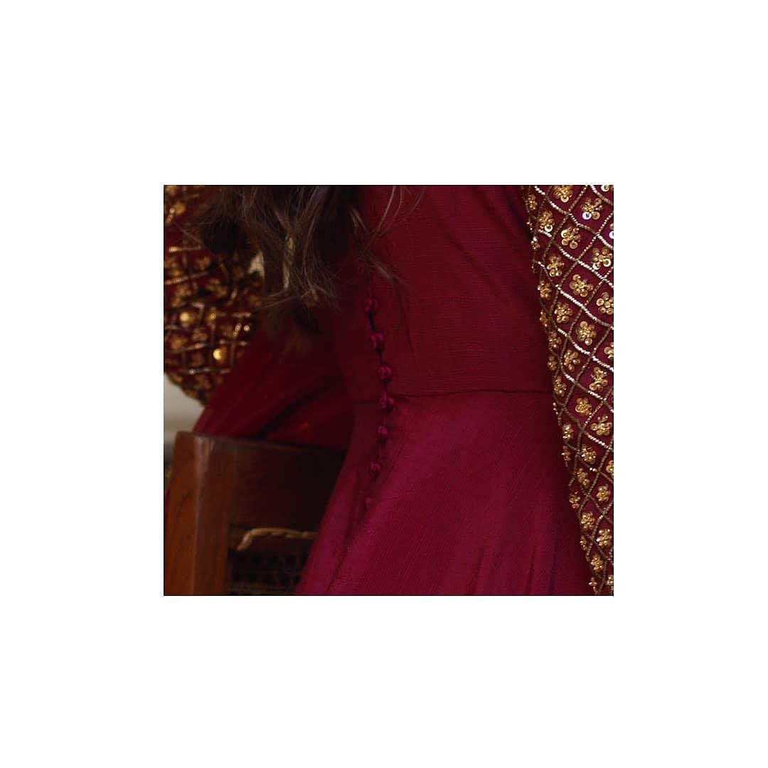 Immerse yourself in timeless elegance with this pure raw silk frock, boasting intricately embellished sleeves that shimmer with exquisite detail, paired seamlessly with a gracefully flowing chun dupatta, making it the perfect ensemble for any formal event or festive occasion.