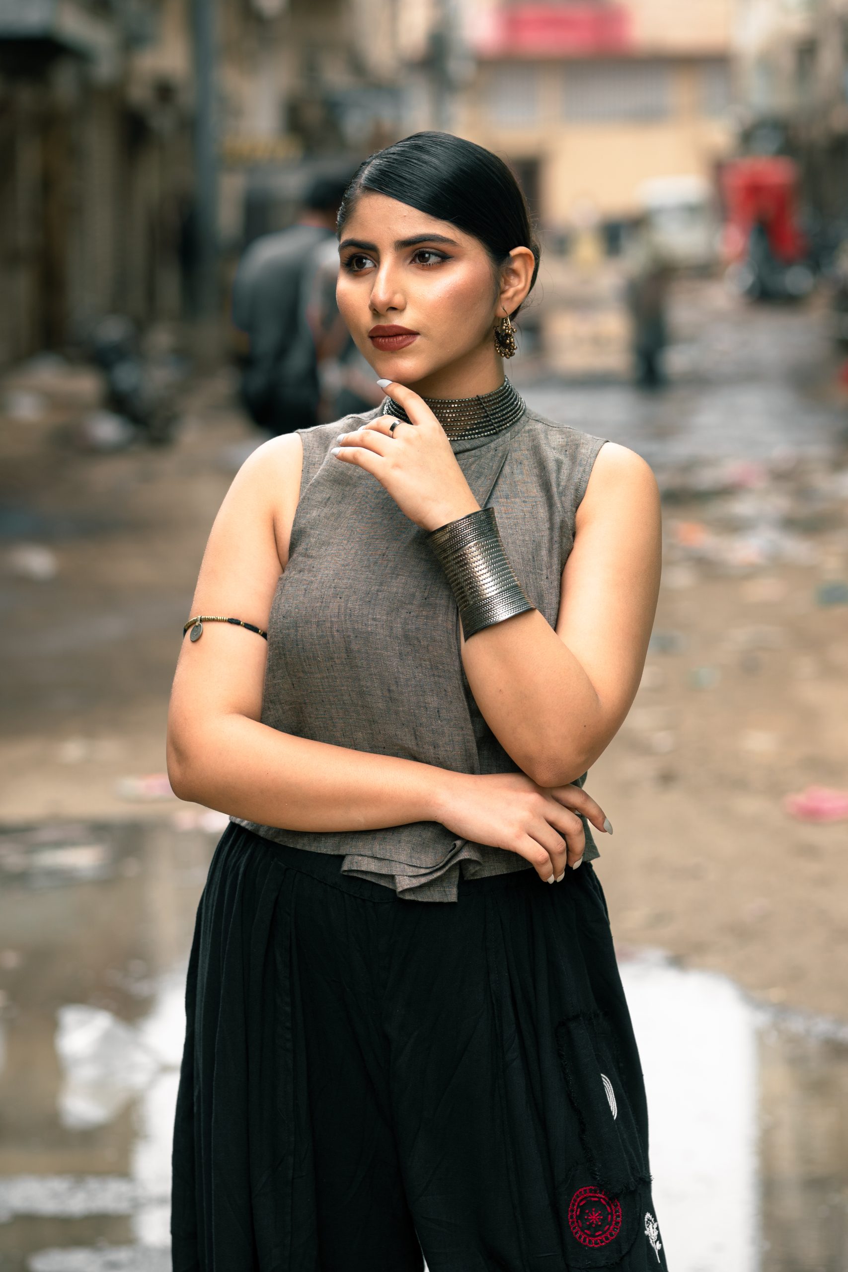 Low-key vibezzzz high key fashionnn with our lastest overlapping top coming with band collar, to yassify the swag adds patchwork harem pants